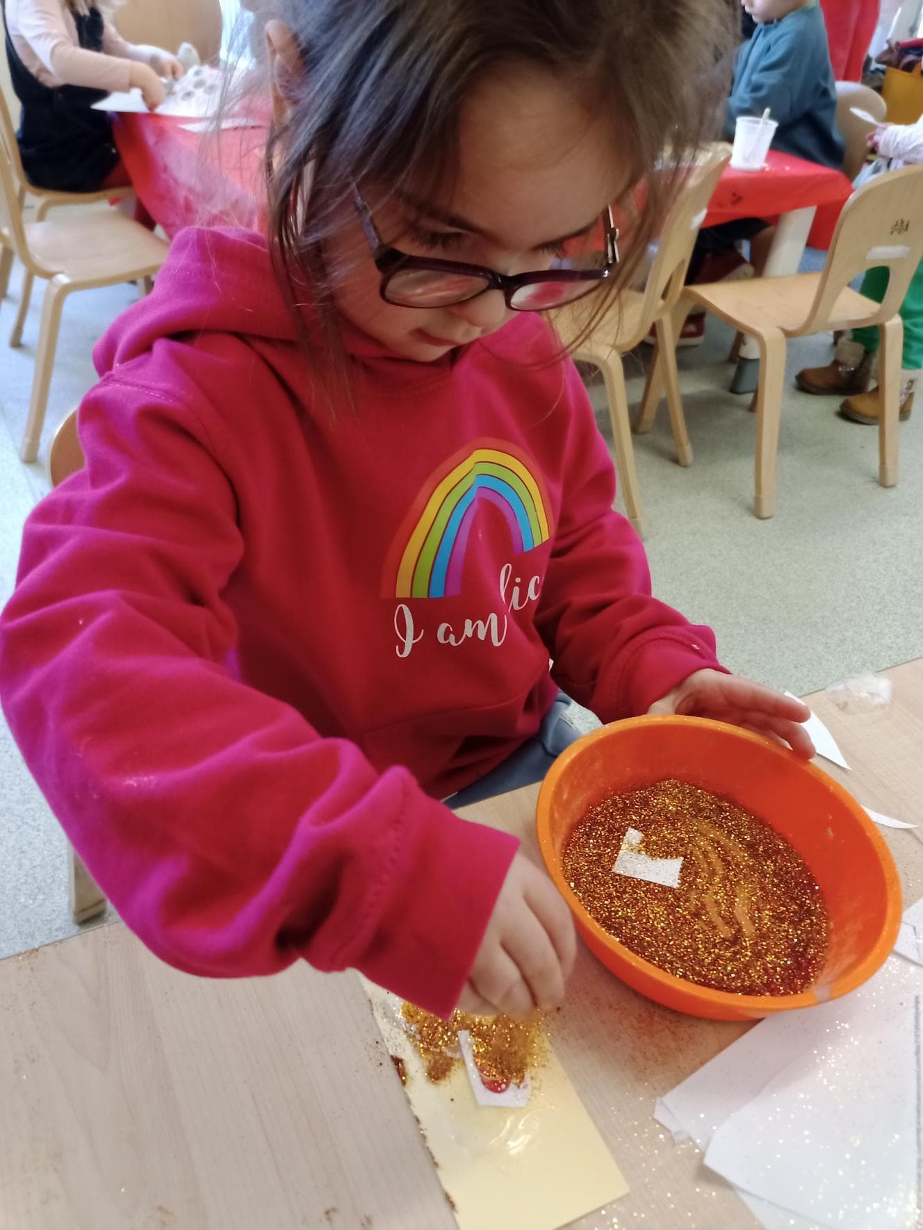 The children drew their own choice of Chinese New Year Zodiac signs and used their scissor control and fine motor skills to carefully cut out their designs. Using red, yellow, and gold colours and glitter the children finished off their masterpieces – which look fantastic on display in the nursery.